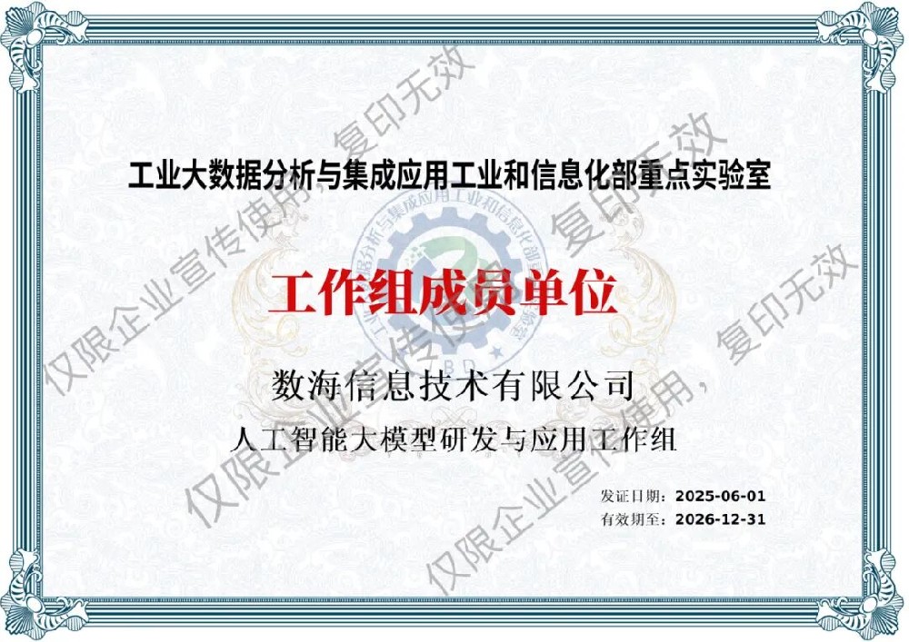 數海信息集團入選工信部重點實驗室人工智能大模型研發(fā)與應用工作組,助力工業(yè)大數據創(chuàng)新與應用??